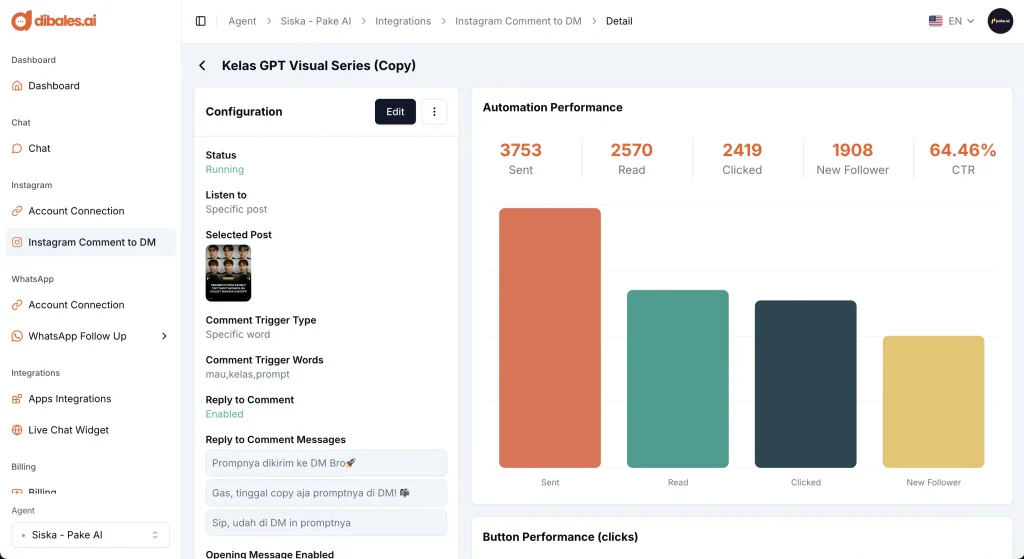 "Win solution buat efisiensi kerja konten creator! Fitur automasi komen ke DM dari Dibales.ai itu simpel, user-friendly, dan manfaatnya lebih banyak dibanding tools sebelah. Move ke dibales.ai itu udah paling bener deh kalau mau engagement-nya naik. Thank you Dibales.ai 🙌"