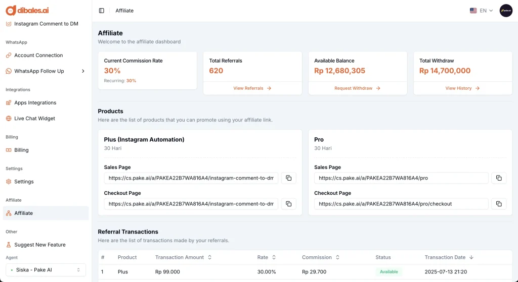 Gabung program affiliate dibales.ai dan dapatkan komisi bulanan dari setiap pengguna yang Anda ajak.