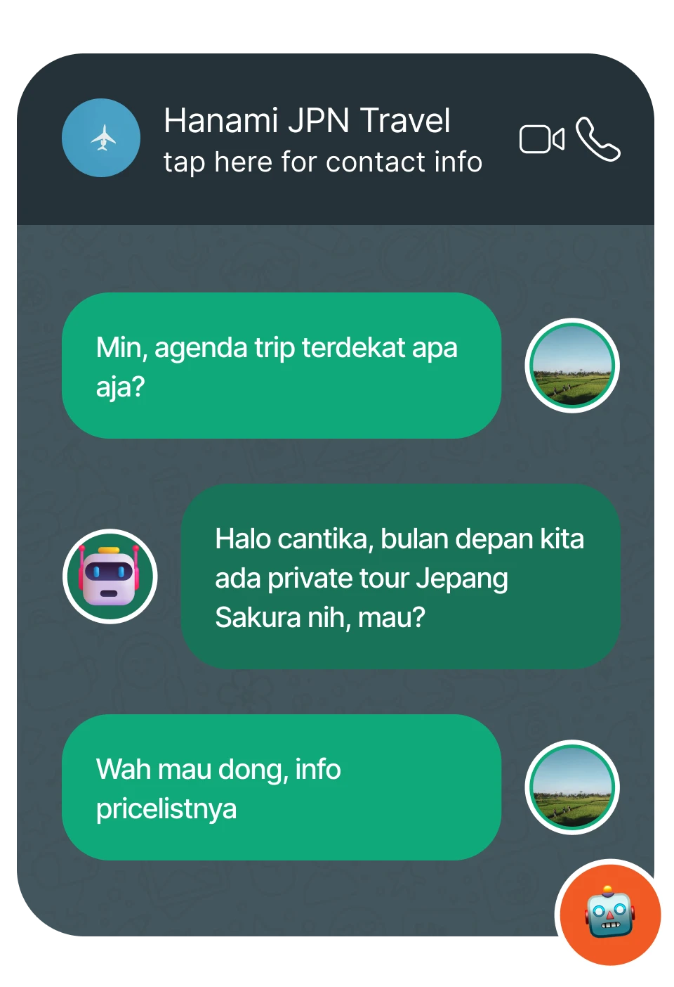 Balas pertanyaan tentang produk atau follow-up saat Anda belum sempat online. Semua bisa dilatih sesuai kebutuhan bisnis Anda.